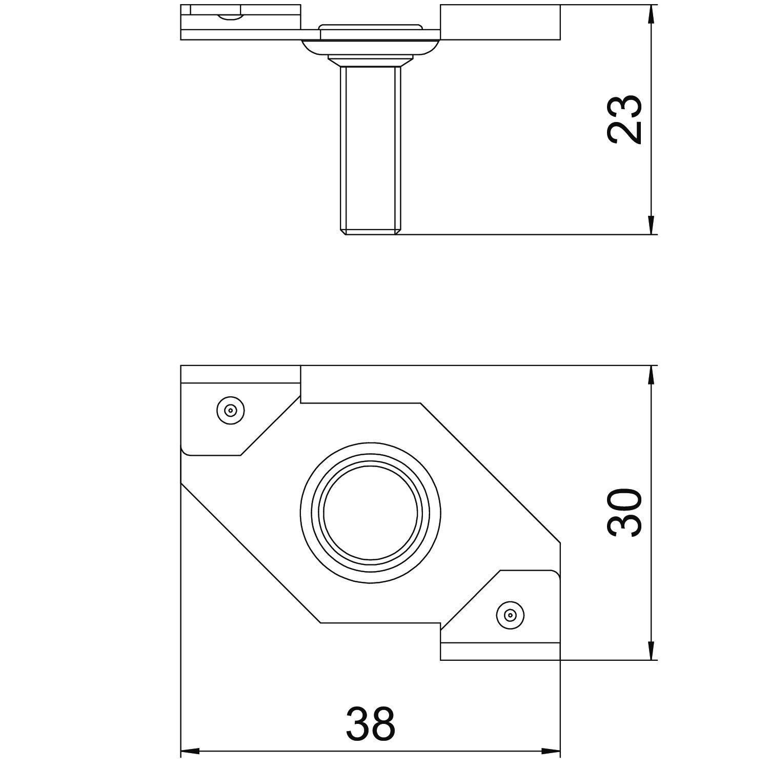 Deckenprofilklammer mit Gewindebolzen für individuelle Montagelösungen an abgehängten Decken. Geeignet für Trägerprofile mit Breite 25 mm, Befestigung durch Klemmen.