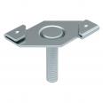 Deckenprofilklammer mit Gewindebolzen für individuelle Montagelösungen an abgehängten Decken. Geeignet für Trägerprofile mit Breite 25 mm, Befestigung durch Klemmen.