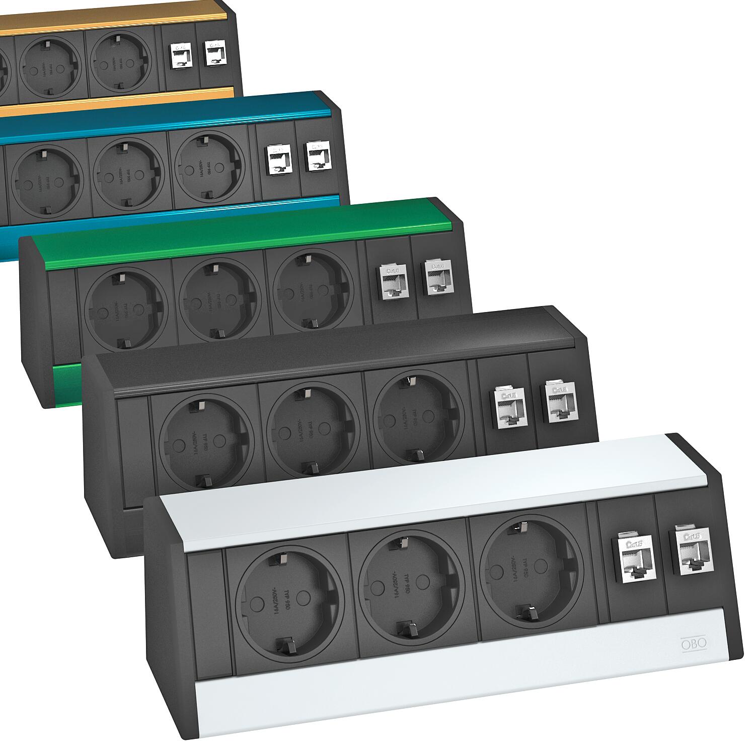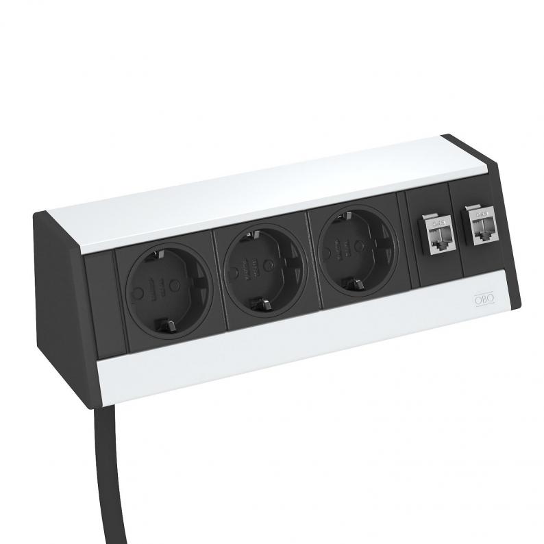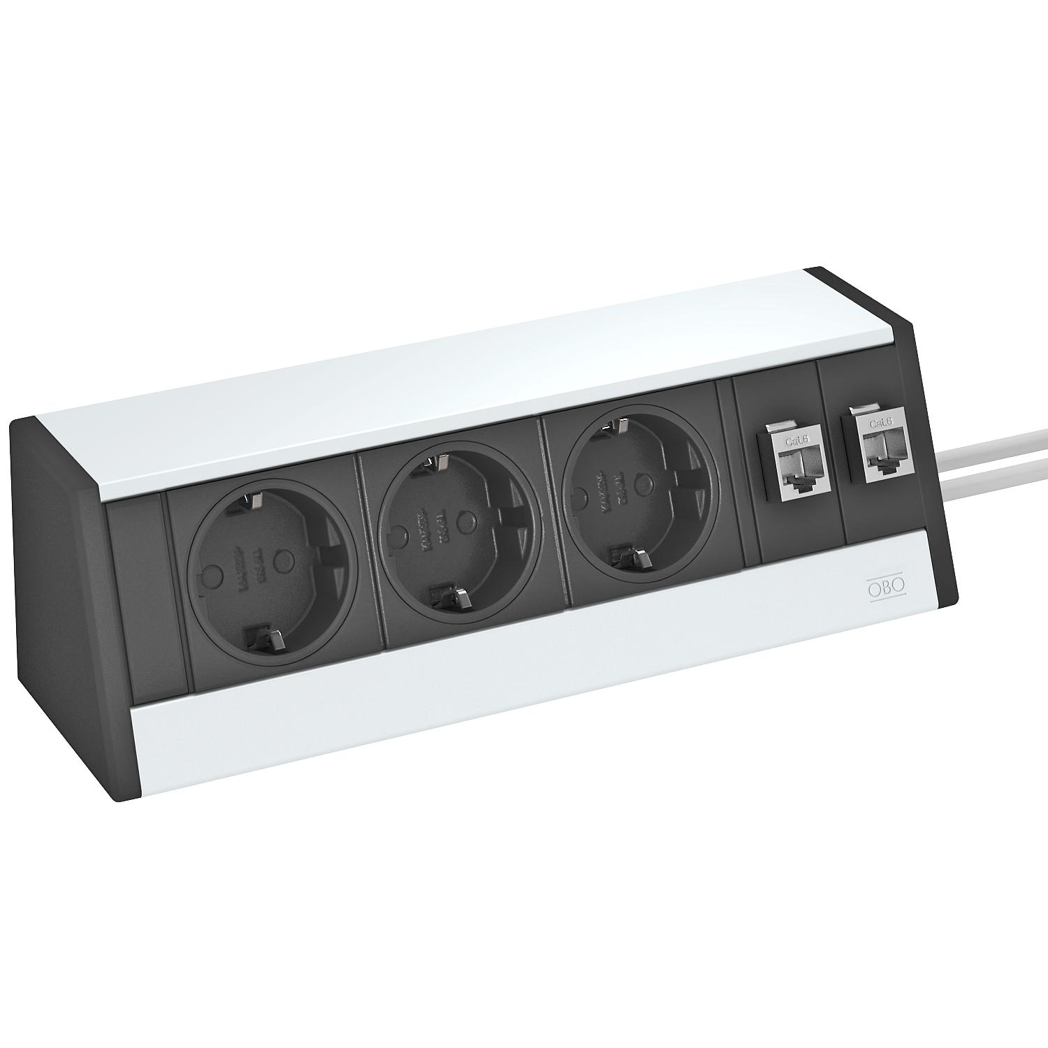 Deskbox DB, ohne Befestigungsmaterial, 3 Steckdosen, 2 x RJ45 Kat. 6