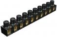 Klemmen Messing, Schrauben Stahl, galvanisch verzinkt und transparent passiviert, 10-polige, in Einzelklemmen abtrennbare Leiste, beidseitig offen.