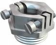 Druckschraube mit zentrisch wirkender Querbügel-Zugentlastung, Schrauben Edelstahl rostfrei.
