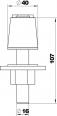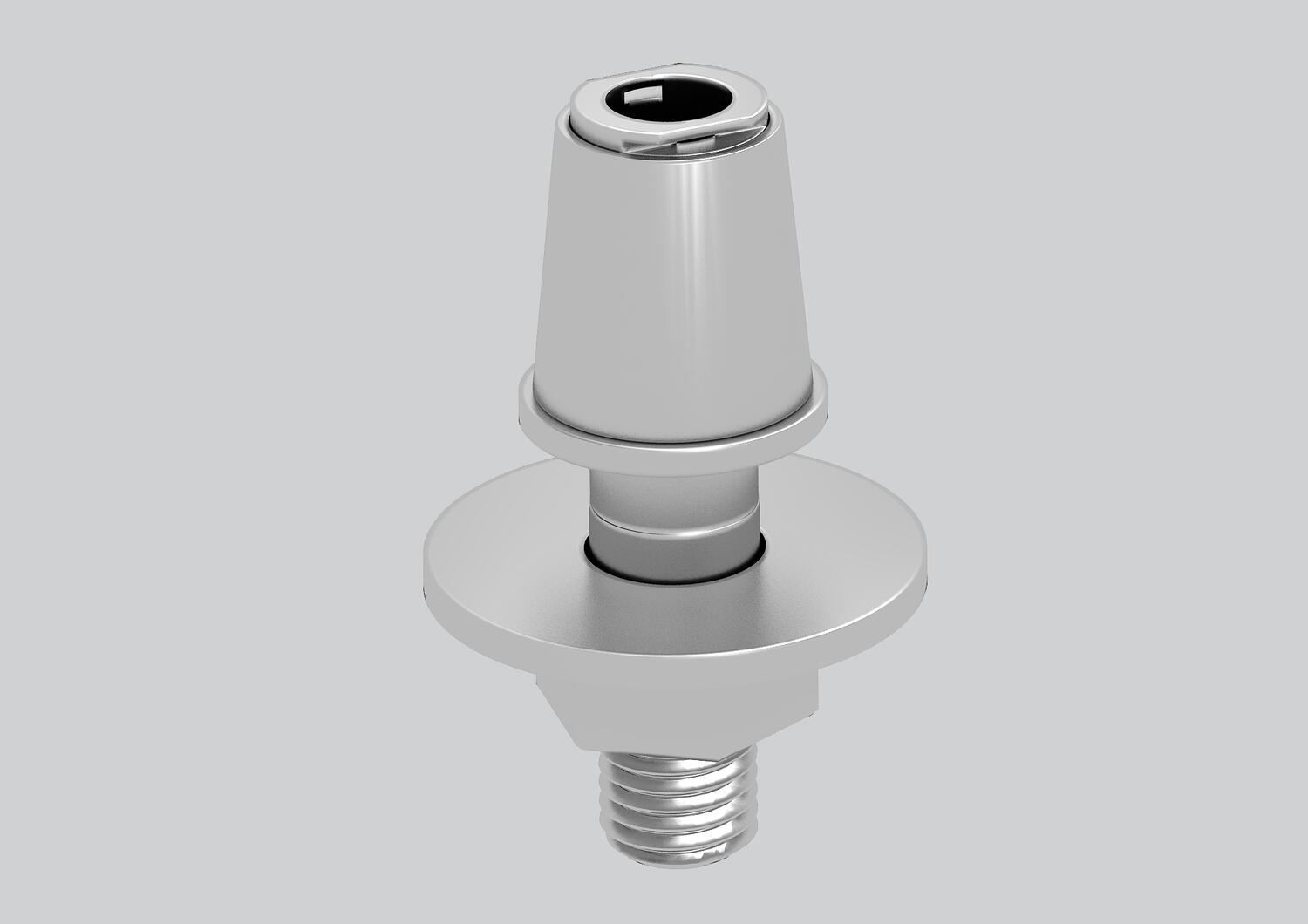 Befestigungsfuß aus Edelstahl für eine feste Montage einer Deskbox Typ DB auf einer Tischplatte. Die Montage erfolgt über eine Bohrung (Ø16 mm) in der Tischplatte.