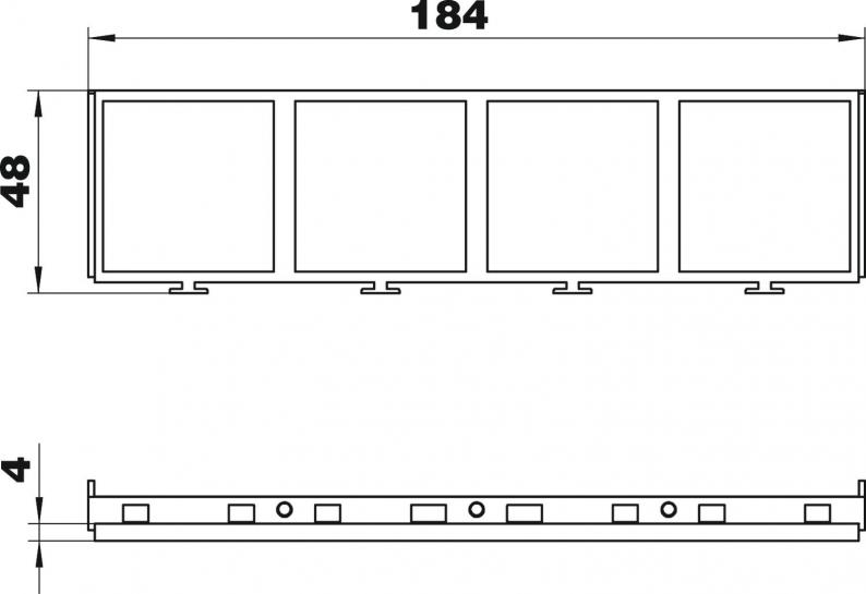 Zum Einbau von 4 Einzelgeräten Modul 45 für Geräteeinsatz System 55 mit Montageträger für vertikalen Einbau von Modul 45-Geräten.