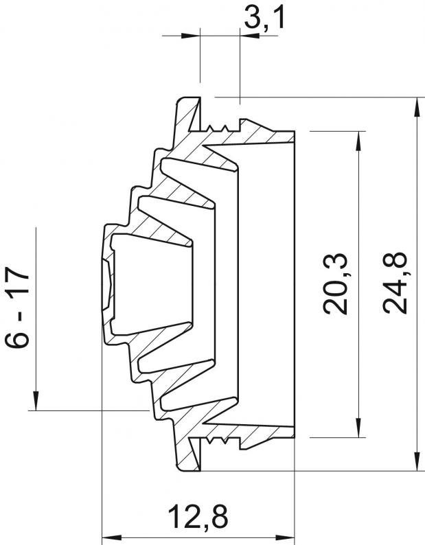Der Einstecknippel kann durch stufenweises Abschneiden dem jeweiligen Kabeldurchmesser angepasst werden.