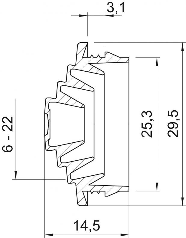 Der Einstecknippel kann durch stufenweises Abschneiden dem jeweiligen Kabeldurchmesser angepasst werden.