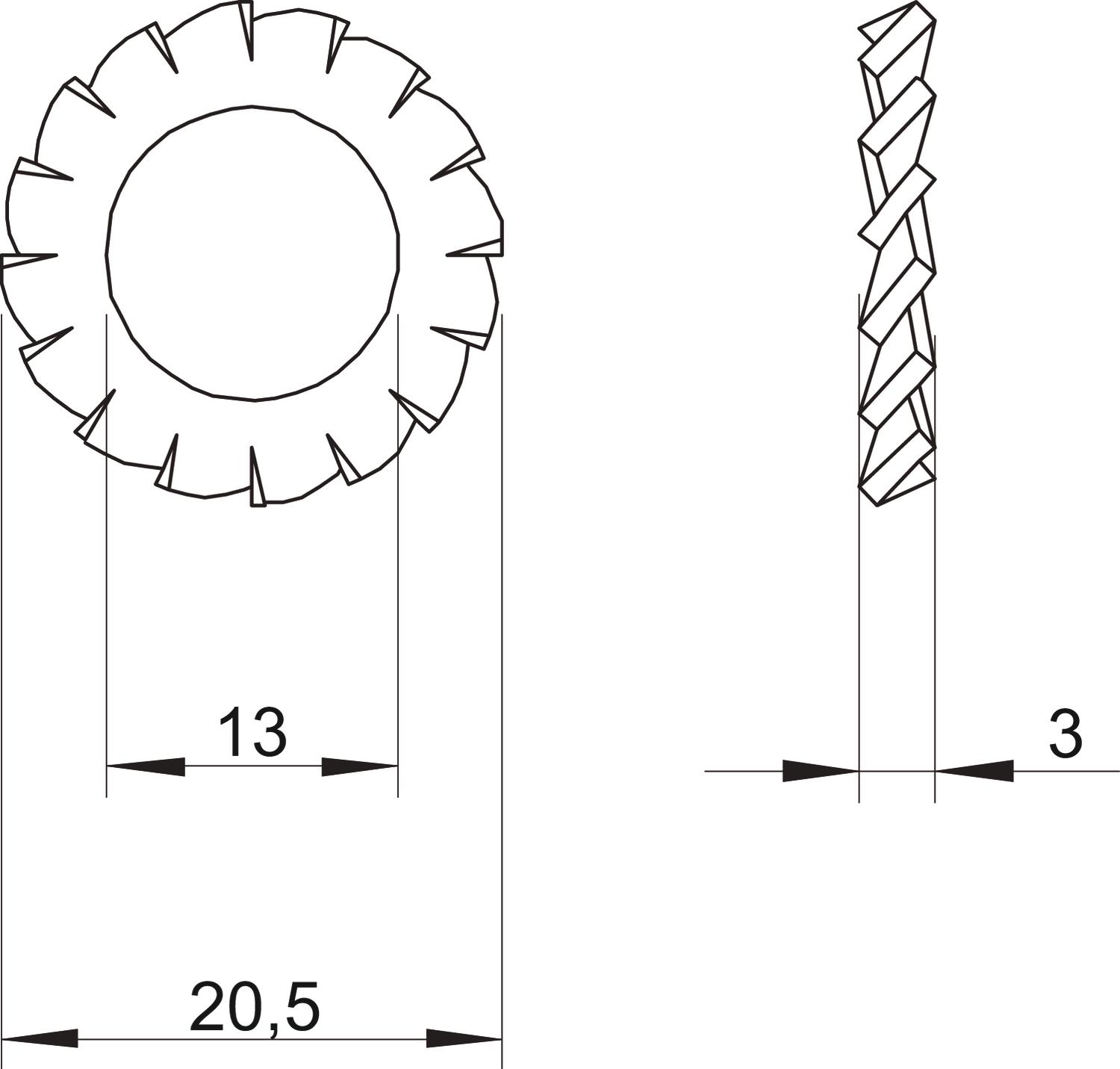 Fächerscheibe nach DIN 6798, Form A.