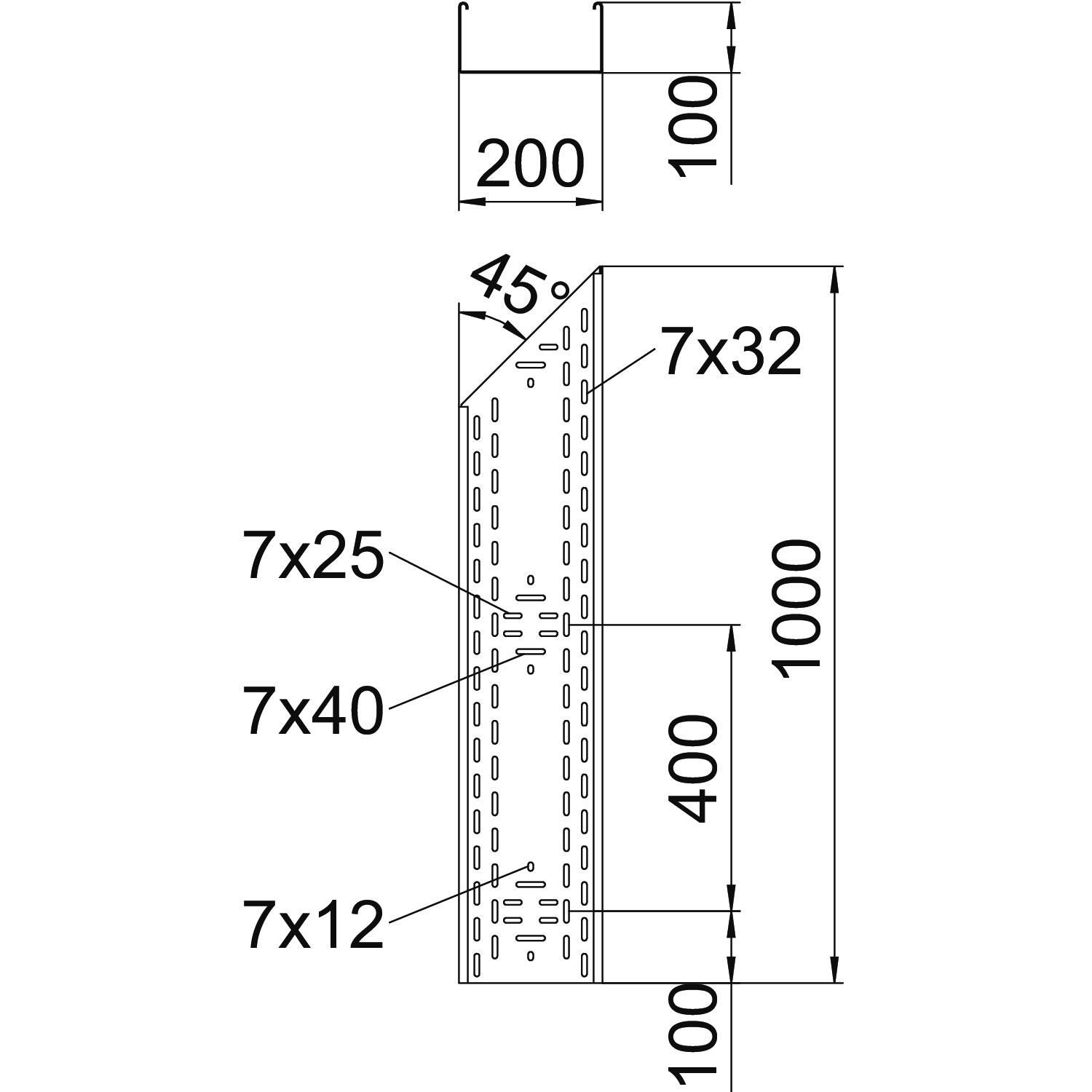 Kabelrinnenformstück mit 45° Grad Schnitt, zur Erstellung von Bögen bei begehbaren Kabelrinnen.