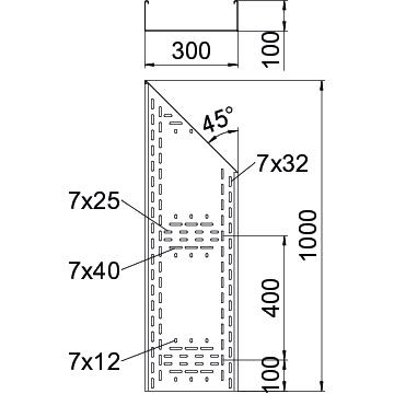 Kabelrinnenformstück mit 45° Grad Schnitt, zur Erstellung von Bögen bei begehbaren Kabelrinnen.