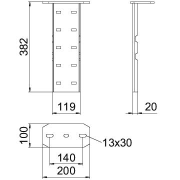 Fußplatte zur Aufnahme von Weitspann-Systemen zum Beispiel zur vertikalen Verlegung von Weitspannkabelrinnen.