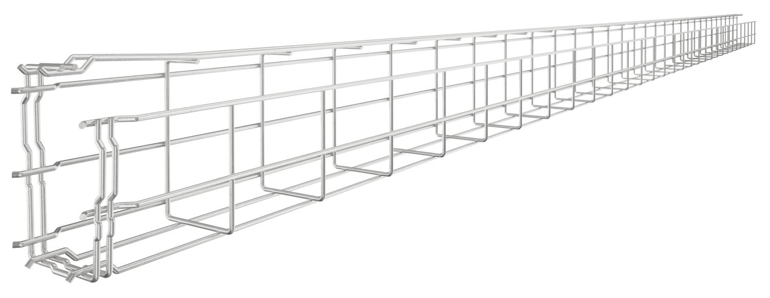 Gitterrinne in G-Form aus punktgeschweißten Stahldrähten mit unterschiedlichen Seitenhöhen und Breiten.