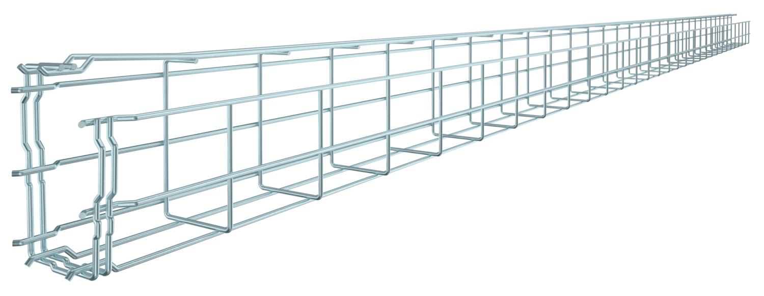 Gitterrinne in G-Form aus punktgeschweißten Stahldrähten mit unterschiedlichen Seitenhöhen und Breiten.