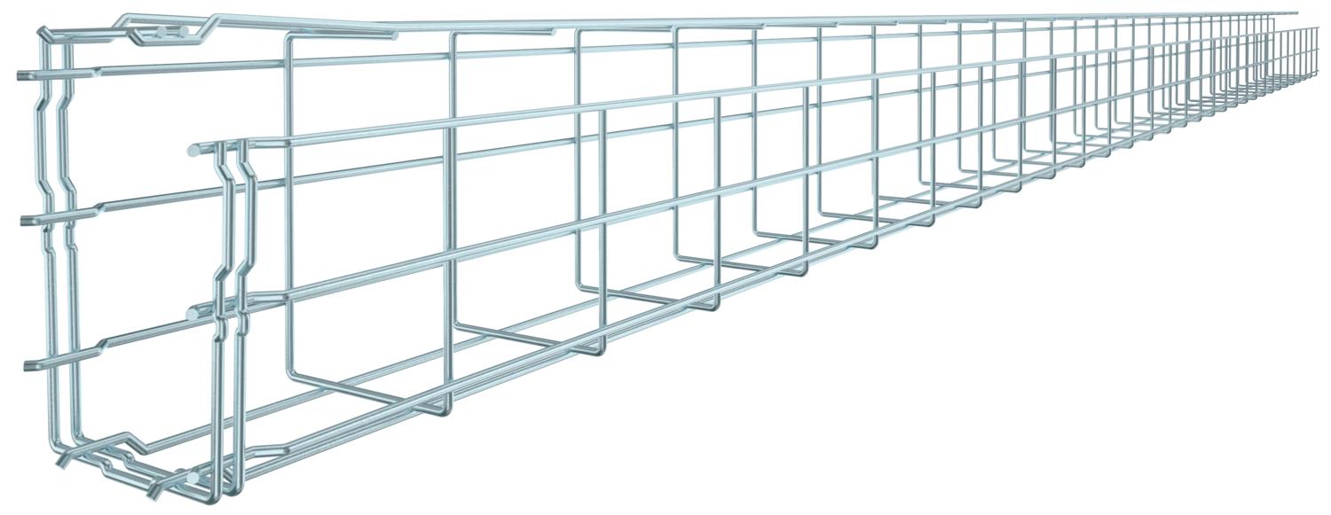 Gitterrinne in G-Form aus punktgeschweißten Stahldrähten mit unterschiedlichen Seitenhöhen und Breiten.