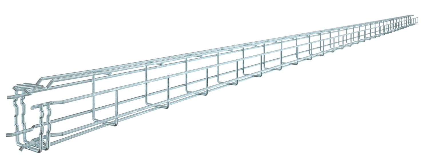Gitterrinne in G-Form aus punktgeschweißten Stahldrähten mit unterschiedlichen Seitenhöhen und Breiten.