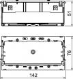Frontrastende Geräteeinbaudose für Standard-Schalterprogramme zum Einbau von 2 Einzel-Installationsgeräten oder einer Mehrfach-Schutzkontakt-Steckdose. Mit abklappbarem und bei Bedarf auch entfernbarem Unterteil zum zeitsparenden Leitungsanschluss sowie mit Zuführungsöffnungen für Leitungsdurchmesser bis 14 mm. Halogenfreie Ausführung.