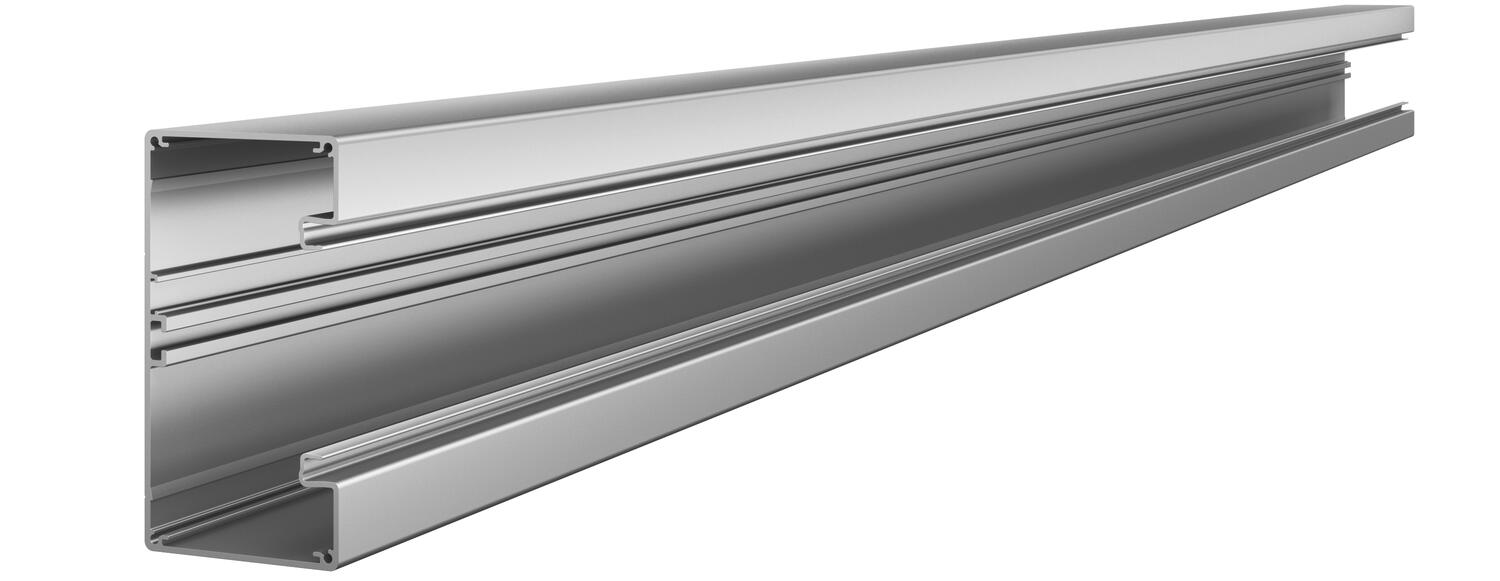 Geräteeinbaukanal ohne Bodenlochung zur direkten Wandmontage oder an Konsolen geeignet. Überlängen bis 6000 mm von Kanalunterteilen und -oberteilen sowie andere RAL-Farben können auf Anfrage realisiert werden. Die Sichtflächen der Geräteeinbaukanäle sind foliert.