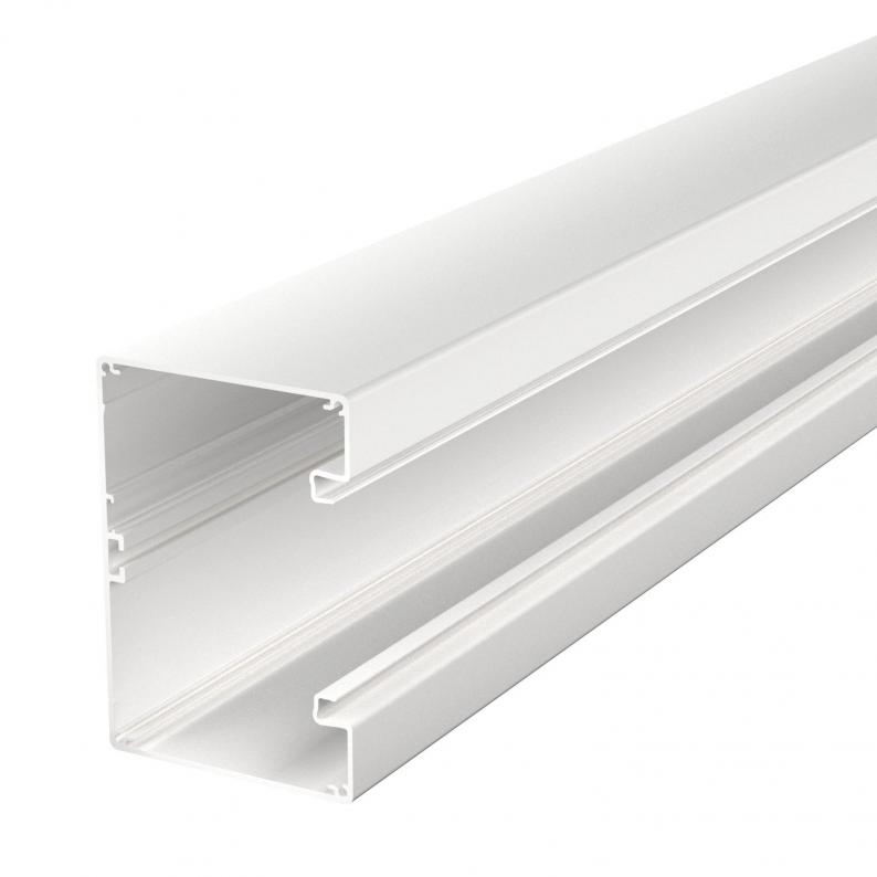 Geräteeinbaukanal ohne Bodenlochung zur direkten Wandmontage oder an Konsolen geeignet. Überlängen bis 6000 mm von Kanalunterteilen und -oberteilen sowie andere RAL-Farben können auf Anfrage realisiert werden. Die Sichtflächen der Geräteeinbaukanäle sind foliert.
