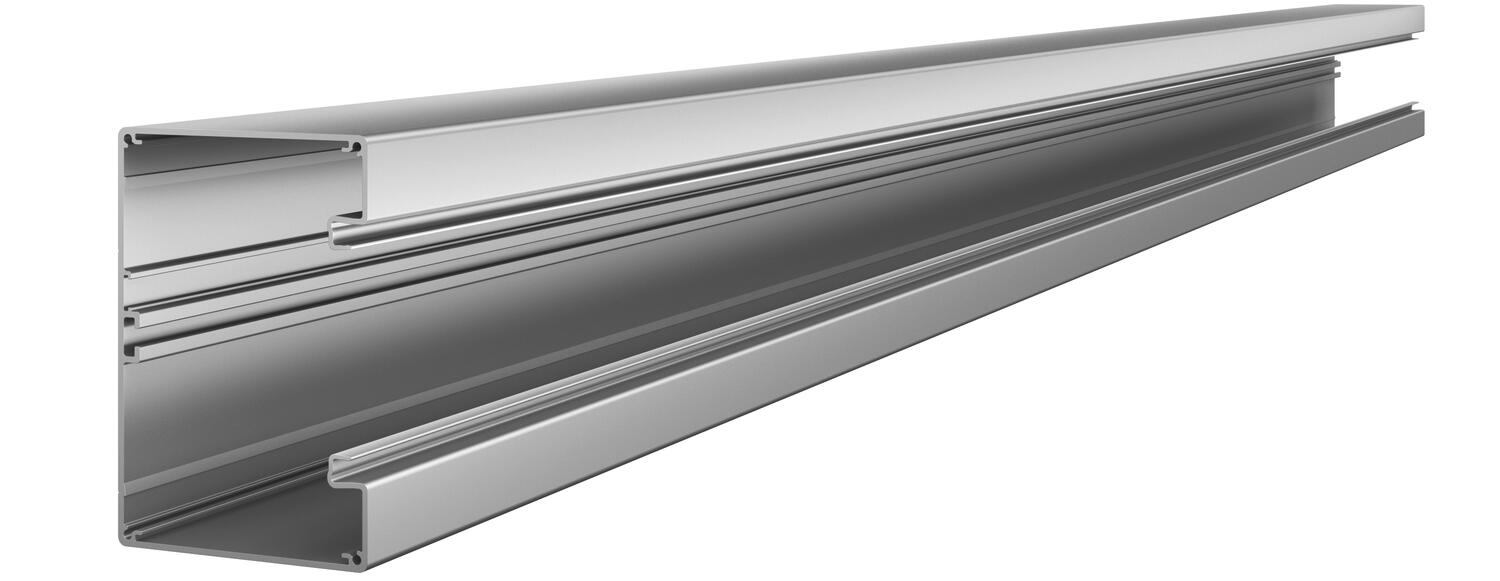 Geräteeinbaukanal ohne Bodenlochung zur direkten Wandmontage oder an Konsolen geeignet. Überlängen bis 6000 mm von Kanalunterteilen und -oberteilen sowie andere RAL-Farben können auf Anfrage realisiert werden. Die Sichtflächen der Geräteeinbaukanäle sind foliert.