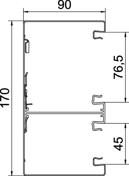 Geräteeinbaukanal Rapid 80, Kanalbreite 170, Kanalhöhe 90, asymmetrisch, doppelt