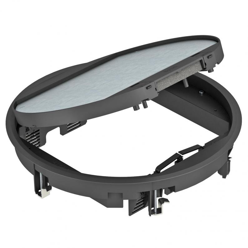 Bodenbelagaussparung im Klappdeckel 5 mm, bei Bedarf auch einstellbar auf 3, 10 oder 12 mm.
