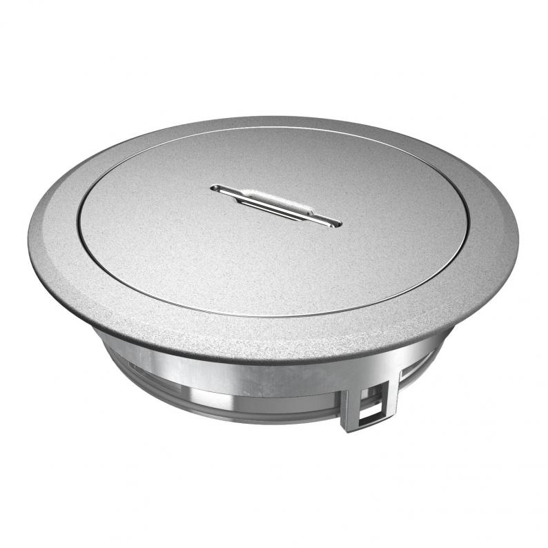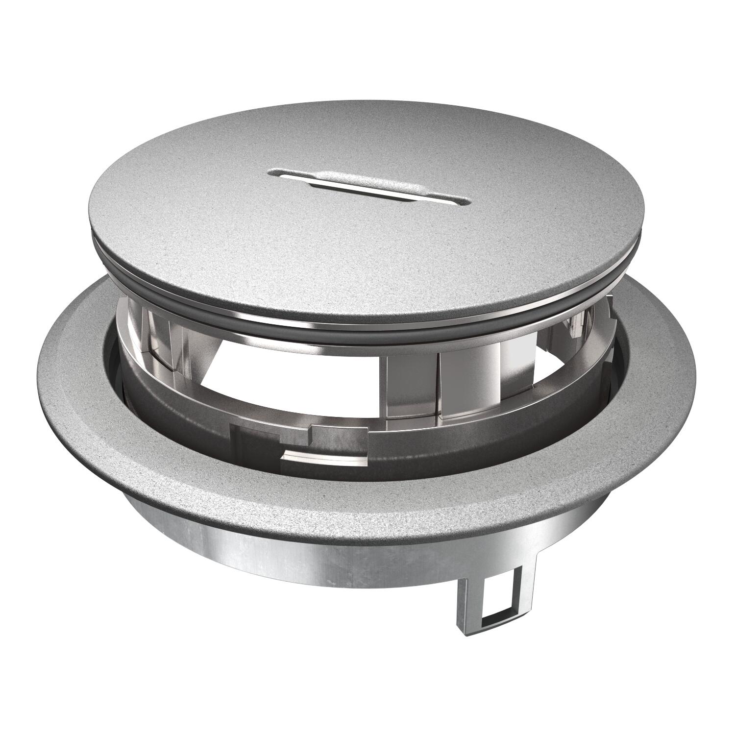 Geräteeinsatz mit Tubus und Griffbügel für Bodensteckdose GES R2 zum direkten Einbau in die Installationsdose MT R2 im Innenbereich.