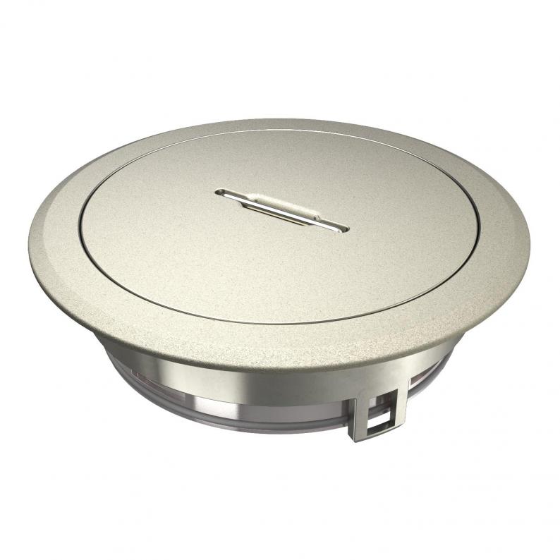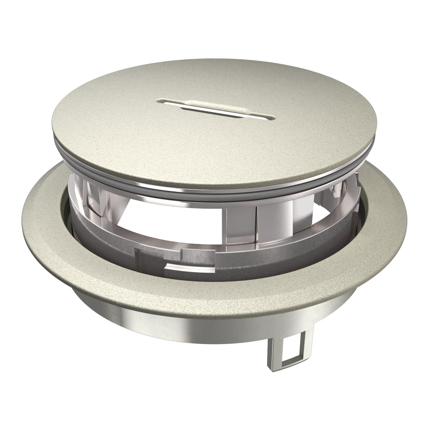 Geräteeinsatz mit Tubus und Griffbügel für Bodensteckdose GES R2 zum direkten Einbau in die Installationsdose MT R2 im Innenbereich.