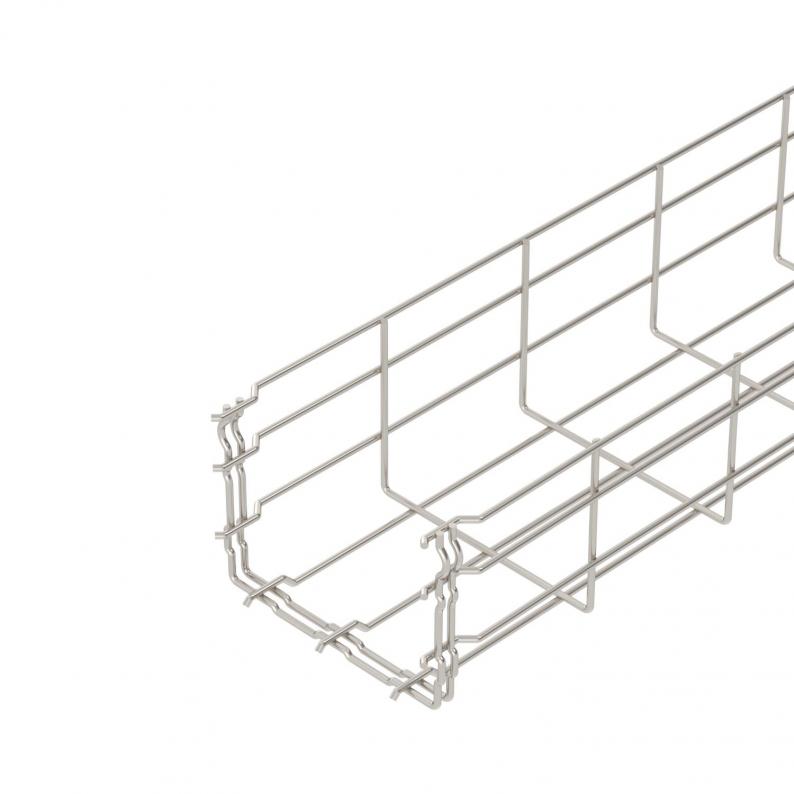 Für die Gitterrinne werden keine zusätzlichen Verbinderbauteile benötigt, sie wird einfach ineinandergesteckt. Die Maschenweite beträgt 50 x 100 mm.