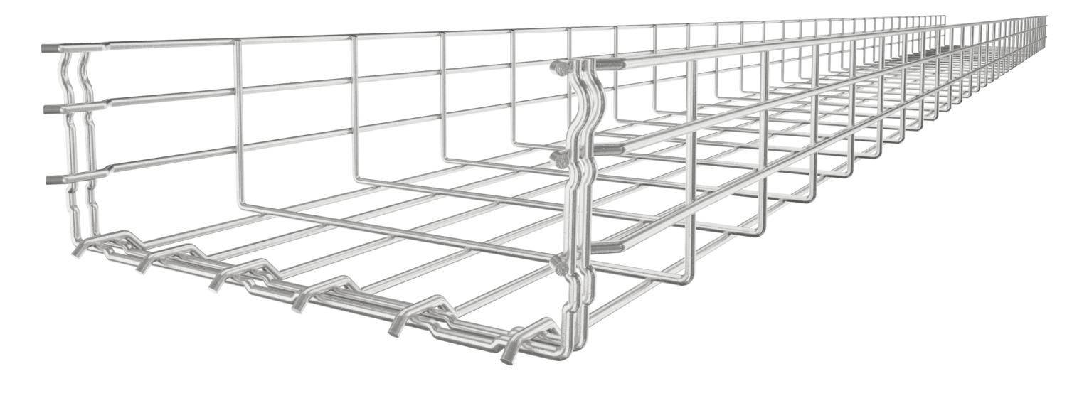 Für die Gitterrinne werden keine zusätzlichen Verbinderbauteile benötigt, sie wird einfach ineinandergesteckt. Die Maschenweite beträgt 50 x 100 mm.
