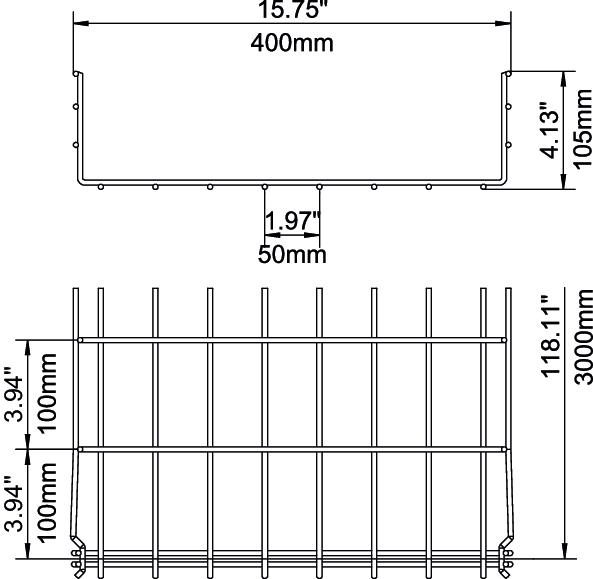 Für die Gitterrinne werden keine zusätzlichen Verbinderbauteile benötigt, sie wird einfach ineinandergesteckt. Die Maschenweite beträgt 50 x 100 mm.