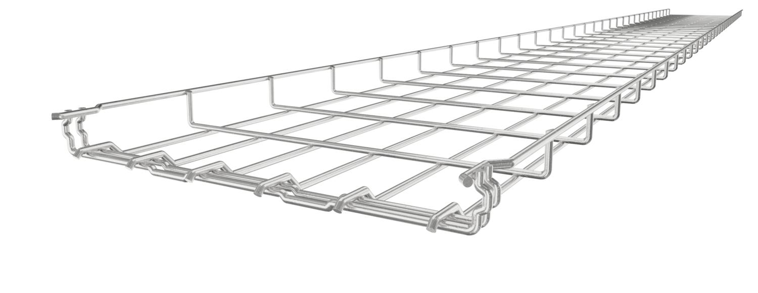 Gitterrinne mit angeformtem Verbinder in der Seitenhöhe 35 mm.