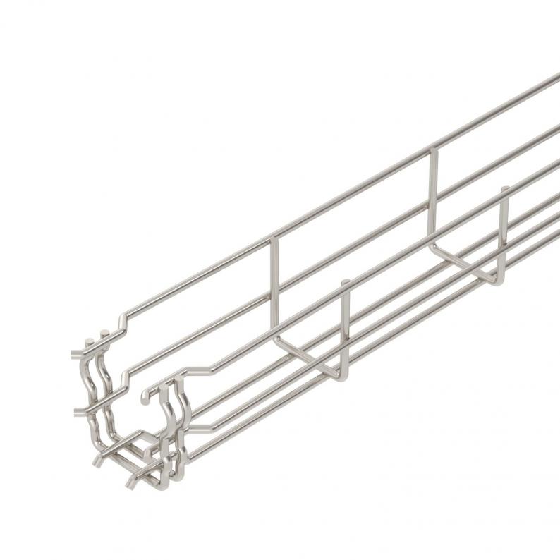 Für die Gitterrinne werden keine zusätzlichen Verbinderbauteile benötigt, sie wird einfach ineinandergesteckt. Die Maschenweite beträgt 50 x 100 mm (Ausnahme GRM 55/50 = 20 x 100 mm).