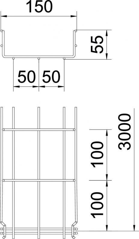 Gitterrinne mit angeformtem Verbinder in der Seitenhöhe 55 mm.