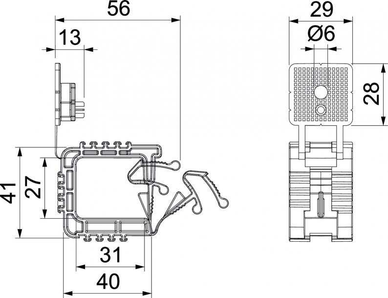 Sammelhalterung mit angespritztem Befestigungselement, zum Montieren von bis zu 10 Leitungen NYM 3 x 1,5 mm² an Wand oder Decke. Befestigung mit Schlagdübel oder Steckdübel. Auch geeignet zum Befestigen mit gas- und akkubetriebenen Setzgeräten der Marken Bosch, Fischer und Spit (Nasendurchmesser innen Ø 7 mm). Befestigungsloch Ø 6 mm. Empfohlener Befestigungsabstand bei voller Belegung 250-400 cm, abhängig von den jeweilig gültigen nationalen Vorgaben/Normen.
