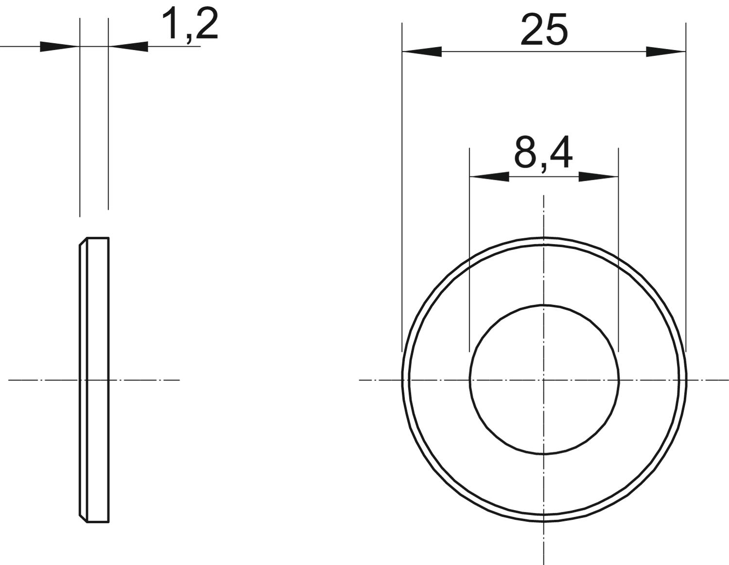 Unterlegscheibe mit besonders großem Außendurchmesser. Bei Verbindungen auf der der Montageschiene MS 41, empfehlen wir den Außendurchmesser 40 mm.