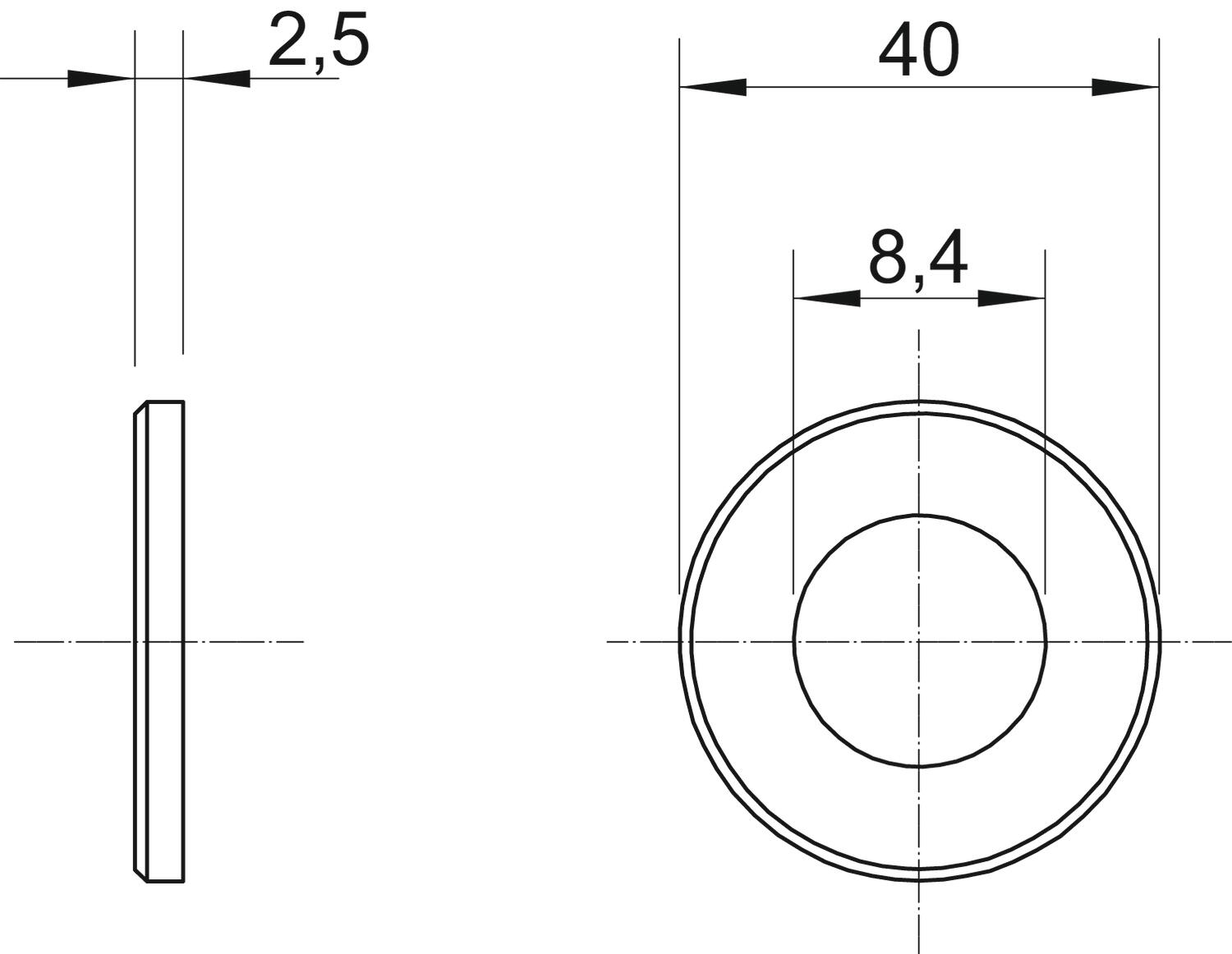 Unterlegscheibe mit besonders großem Außendurchmesser.