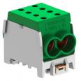 1-polige Hauptleitungsabzweigklemme 4 x 70 mm² Leiteranschlussquerschnitten pro Pol. Mit 2 Schrauben pro Klemmstelle für einen sicheren Kontaktdruck. Hochfeste Schnellbefestigung aus verzinktem Stahlblech zur einfachen Montage auf Tragschienen.