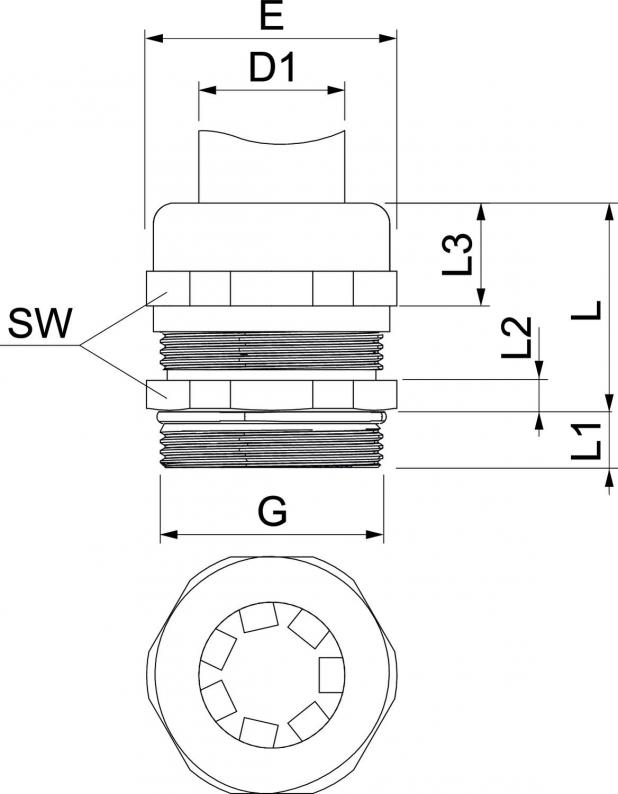 Robuste EMV Kabelverschraubung mit metrischem Anschlussgewinde nach IEC 423 in Hutmutterbauart für hohe Dichtigkeitsansprüche. Die Kontaktierung zwischen Verschraubung und Schirmgeflecht erfolgt über eine Kontaktfeder. Zugentlastung, Verdrehschutz und Dichtigkeit über den gesamten Spannbereich. Dichtring aus Neopren. Klemmeinsatz aus Polyamid. Mit vormontiertem O-Dichtring am Anschlussgewinde, Schutzart IP68 bei 5 bar/1 h.