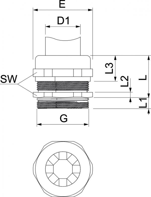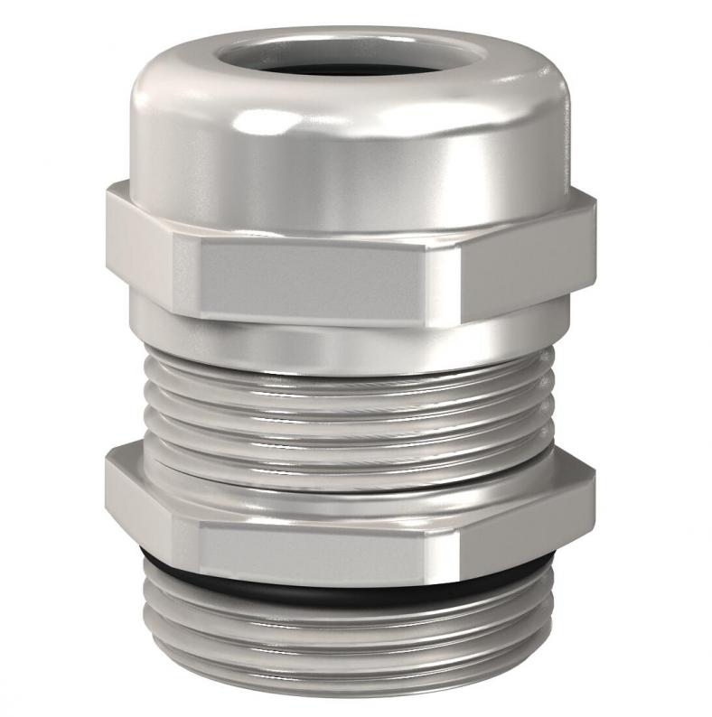 Robuste EMV Kabelverschraubung mit metrischem Anschlussgewinde nach IEC 423 in Hutmutterbauart für hohe Dichtigkeitsansprüche. Die Kontaktierung zwischen Verschraubung und Schirmgeflecht erfolgt über eine Kontaktfeder. Zugentlastung, Verdrehschutz und Dichtigkeit über den gesamten Spannbereich. Dichtring aus Neopren. Klemmeinsatz aus Polyamid. Mit vormontiertem O-Dichtring am Anschlussgewinde, Schutzart IP68 bei 5 bar/1 h.