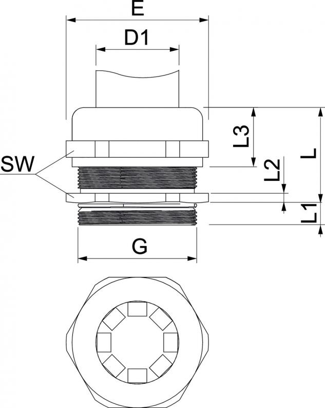 Robuste EMV Kabelverschraubung mit metrischem Anschlussgewinde nach IEC 423 in Hutmutterbauart für hohe Dichtigkeitsansprüche. Die Kontaktierung zwischen Verschraubung und Schirmgeflecht erfolgt über eine Kontaktfeder. Zugentlastung, Verdrehschutz und Dichtigkeit über den gesamten Spannbereich. Dichtring aus Neopren. Klemmeinsatz aus Polyamid. Mit vormontiertem O-Dichtring am Anschlussgewinde, Schutzart IP68 bei 5 bar/1 h.
