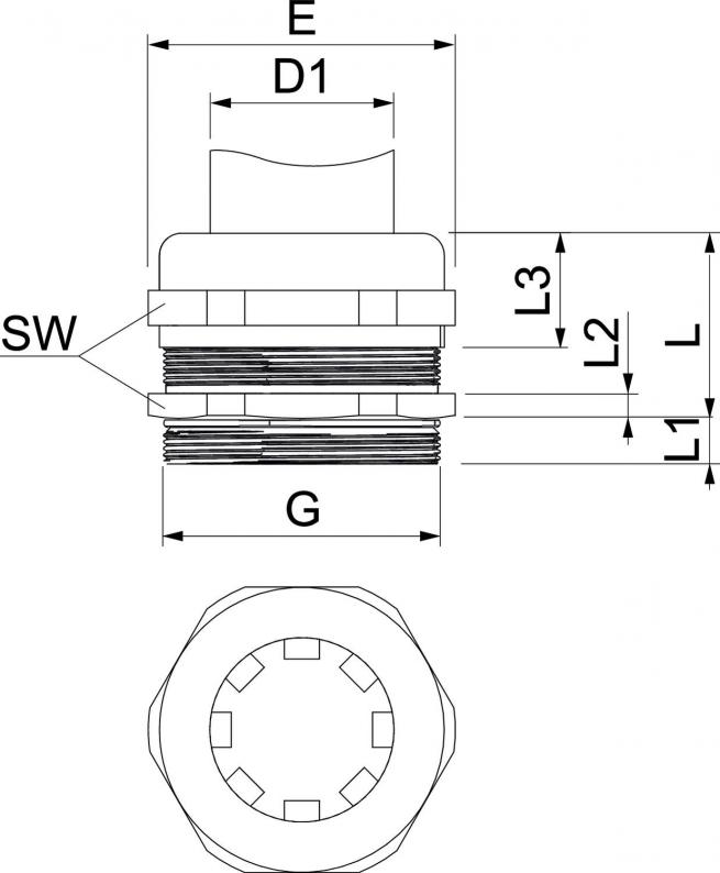 Robuste EMV Kabelverschraubung mit metrischem Anschlussgewinde nach IEC 423 in Hutmutterbauart für hohe Dichtigkeitsansprüche. Die Kontaktierung zwischen Verschraubung und Schirmgeflecht erfolgt über eine Kontaktfeder. Zugentlastung, Verdrehschutz und Dichtigkeit über den gesamten Spannbereich. Dichtring aus Neopren. Klemmeinsatz aus Polyamid. Mit vormontiertem O-Dichtring am Anschlussgewinde, Schutzart IP68 bei 5 bar/1 h.