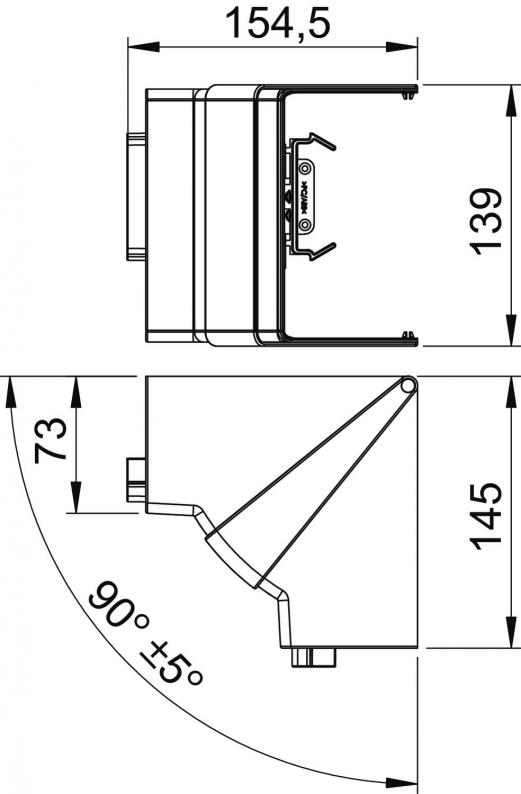 Inneneck-Haubenformteil aus halogenfreiem PC/ABS zur Richtungsänderung von Geräteeinbaukanälen Rapid 80 der Systeme GK, GKH, GS und GA. Die Formteile sind variabel von 85° - 95° verstellbar und einsetzbar für symmetrische und asymmetrische Kanäle.