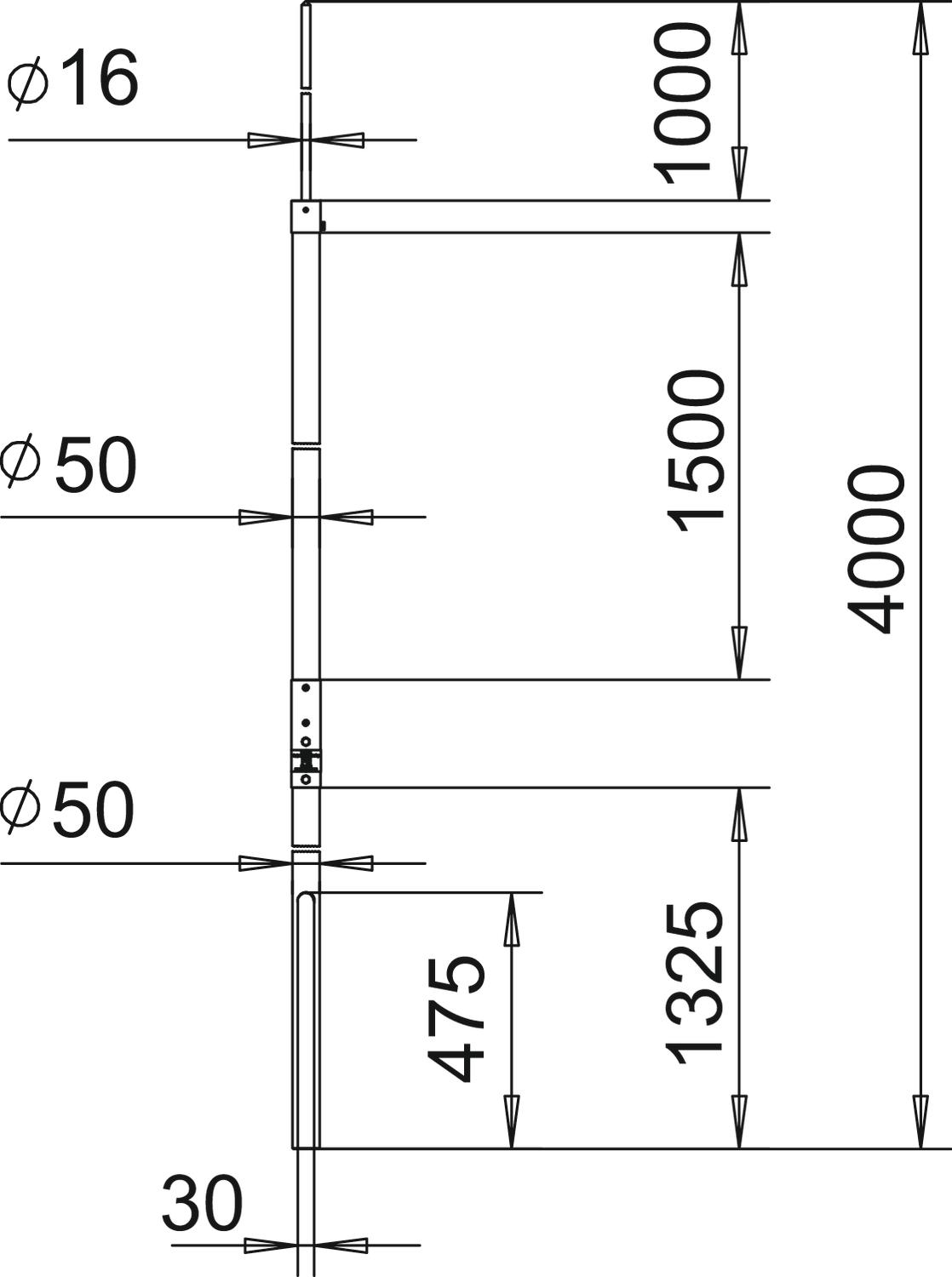 Isolierter Fangmast für innenverlegte isCon-Leitung mit seitlichem Auslass