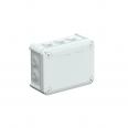 Kabelabzweigkasten zum Verbinden von Kabeln und Leitungen im Innenbereich und geschützten Außenbereichen. Rechteckige Form mit Einsteckdichtungen an den Seiten und Ausschlageinführungen im Boden. Geeignet für die Wand-/ Deckenmontage und die Montage auf Montageblechen. Mit der Möglichkeit zur Innenbefestigung und Montage über die Eckdome. Deckel mit Schnellverschluss, plombierbar. Hergestellt aus halogenfreien und UV-resistenten Materialien.