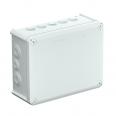 Kabelabzweigkasten zum Verbinden von Kabeln und Leitungen im Innenbereich und geschützten Außenbereichen. Rechteckige Form mit Einsteckdichtungen an den Seiten und Ausschlageinführungen im Boden. Geeignet für die Wand-/ Deckenmontage, die Montage auf Montageblechen und Gewinde im Boden. Mit der Möglichkeit zur Innenbefestigung und Montage über die Eckdome. Deckel mit Schnellverschluss, plombierbar. Hergestellt aus halogenfreien Materialien. Flammwidrige Ausführung aus speziellem Polypropylen.