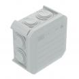 Kabelabzweigkasten zum Verbinden von Kabeln und Leitungen im Innenbereich und geschützten Außenbereichen. Quadratische Form mit Einsteckdichtungen an den Seiten und Ausschlageinführungen im Boden. Geeignet für die Wand-/ Deckenmontage und die Montage auf Montageblechen. Mit der Möglichkeit zur Innenbefestigung. Mit festsitzendem Klemmdeckel. Hergestellt aus halogenfreien und UV-resistenten Materialien.