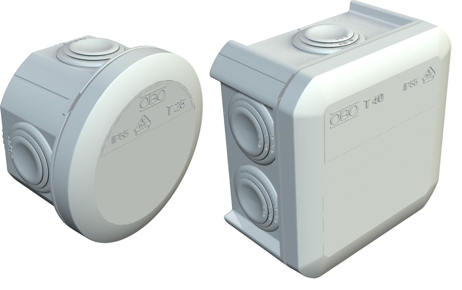 Kabelabzweigkasten gemäß DIN EN 60670. Flammwidrig nach DIN EN 60695-2-11, Prüftemperatur 960°C.