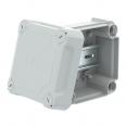 Kabelabzweigkasten geschlossen zum Verbinden von Kabeln und Leitungen im Innenbereich und geschützten Außenbereichen. Quadratische Form ohne Einführungen. Geeignet für die Wand-/ Deckenmontage und die Montage auf Montageblechen. Mit der Möglichkeit zur Innenbefestigung und Montage über die Eckdome. Hoher Deckel mit Schnellverschluss, plombierbar. Hergestellt aus halogenfreien und UV-resistenten Materialien.