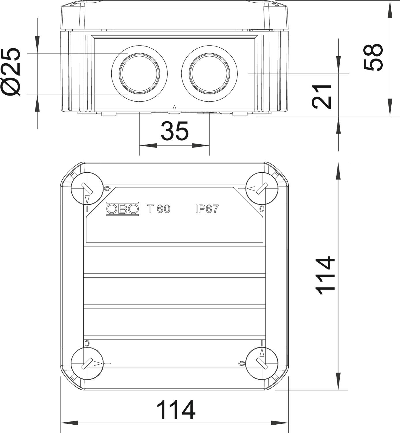Kabelabzweigkasten T60 mit Ausschlageinführungen