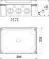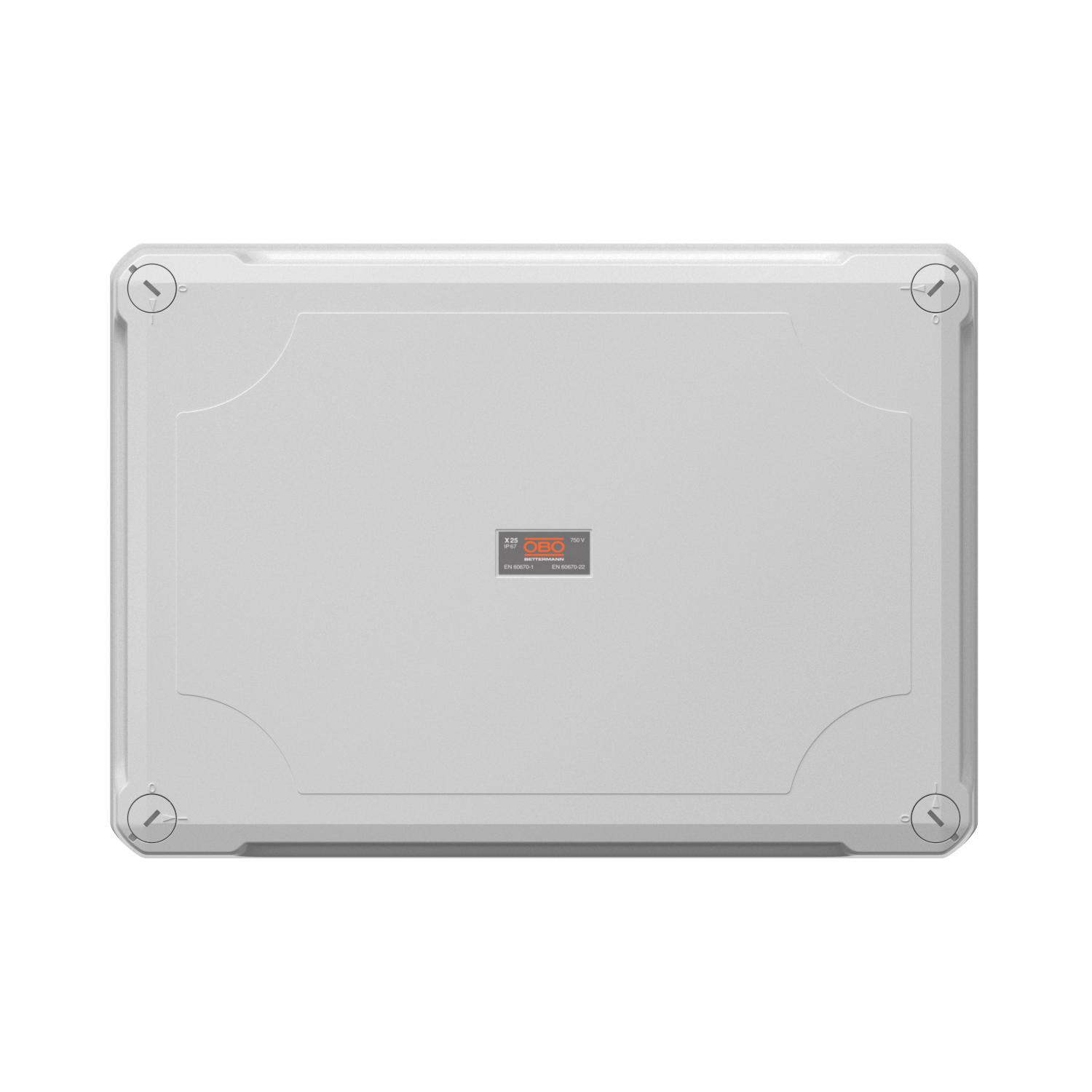 Kabelabzweigkasten zum Verbinden von Kabeln und Leitungen im Innen- und Außenbereich. Rechteckige Form mit Ausschlageinführungen. Geeignet für die Wand-/ Deckenmontage mit der Möglichkeit zur Außenbefestigung, Innenbefestigung oder Montage über die Eckdome. Besonders schlagfest mit IK09. Deckel mit Schnellverschluss, plombierbar. Hergestellt aus halogenfreien und UV-resistenten Materialien.