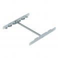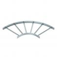 Kabelleiter in Seitenhöhe 60 mm mit eingeschweißten, nach oben offenen C30 Profilsprossen. Eingerollter Seitenholm zur Verstärkung und als Kantenschutz. Die Befestigung auf dem Ausleger erfolgt mit Klemmstücken Typ LKS 40. Das Schlitzmaß der Sprosse beträgt 16,5 mm, die passende Bügelschelle ist der Typ BS-H....