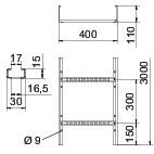 Kabelleiter mit gelochtem Seitenholm in der Seitenhöhe 110 mm mit eingenieteten, nach oben offenen C-Profil-Sprossen.